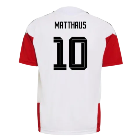Official Lothar Matthaus football shirt. This is the NEW Germany Training Jersey (White) - Kids for the 2026-2027 season which is manufactured by Adidas and is available in all Childrens sizes.