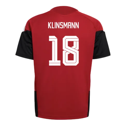 Official Jurgen Klinsmann football shirt. This is the NEW Germany Training Jersey (Red) - Kids for the 2026-2027 season which is manufactured by Adidas and is available in all Childrens sizes.