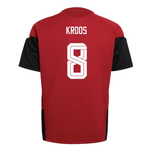 Official Toni Kroos football shirt. This is the NEW Germany Training Jersey (Red) - Kids for the 2026-2027 season which is manufactured by Adidas and is available in all Childrens sizes.