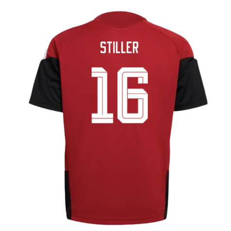 Official Angelo Stiller football shirt. This is the NEW Germany Training Jersey (Red) - Kids for the 2026-2027 season which is manufactured by Adidas and is available in all Childrens sizes.