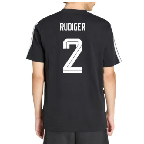 Official Antonio Rudiger football shirt. This is the NEW Germany DNA Tee (Black) for the 2026-2027 season which is manufactured by Adidas and is available in all Adult sizes.
