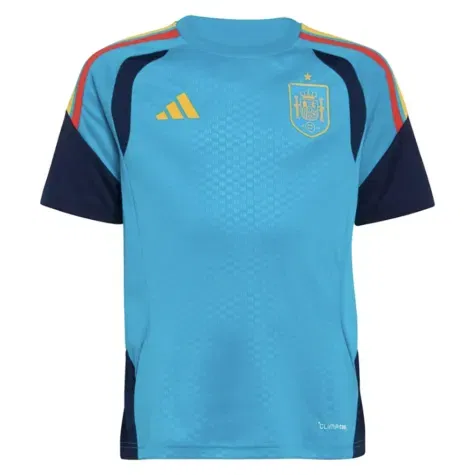 Prepare your young footballer for success with the official Spain 2026 Training Jersey in striking Bold Aqua. Designed to match the kit worn by La Roja's stars during their preparation sessions, this training shirt brings professional-grade performance to aspiring players.