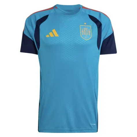 Crafted from Adidas's advanced moisture-wicking fabric, this training jersey keeps you cool and dry during the most intense sessions. The bold aqua shade offers a fresh, modern twist on Spain's traditional colours, whilst the iconic three stripes and Spain national team crest display your allegiance with pride.