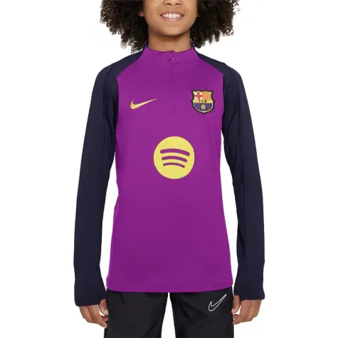 Get your young Bara fan ready for training like the pros with this striking Nike Dri-FIT Strike Drill Top. Designed in a bold purple colourway that captures the innovative spirit of FC Barcelona, this training essential combines performance technology with authentic club style.