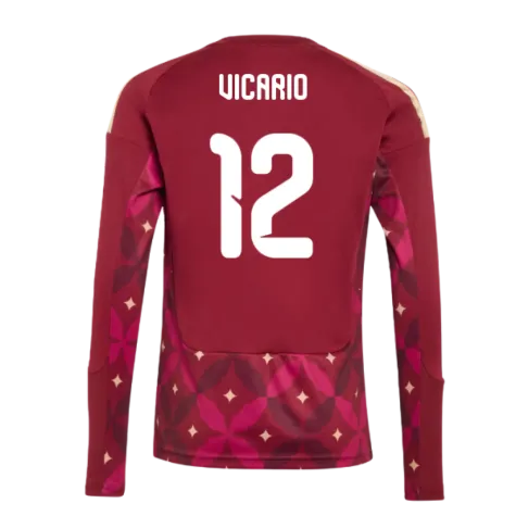 Official Guglielmo Vicario football shirt. This is the NEW Italy Home Goalkeeper Shirt (Burgundy) - Kids for the 2026-2027 season which is manufactured by Adidas and is available in all Childrens sizes.