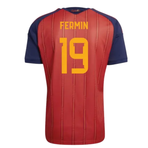 Official Fermin Lopez football shirt. This is the NEW Spain Home Youth Kit for the 2026-2027 season which is manufactured by Adidas and is available in all Childrens sizes.