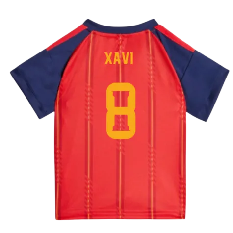 Official Xavi football shirt. This is the NEW Spain Home Baby Kit for the 2026-2027 season which is manufactured by Adidas and is available in all Childrens sizes.