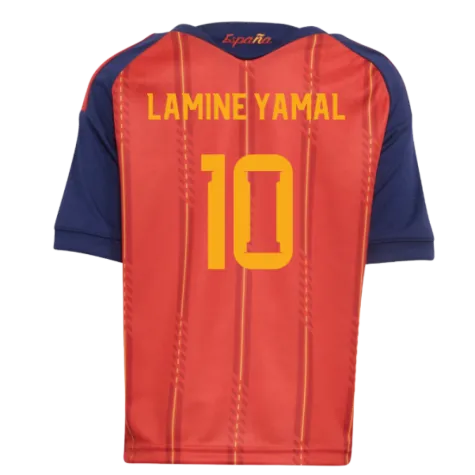 Official Lamine Yamal football shirt. This is the NEW Spain Home Little Kids Mini Kit for the 2026-2027 season which is manufactured by Adidas and is available in all Childrens sizes.