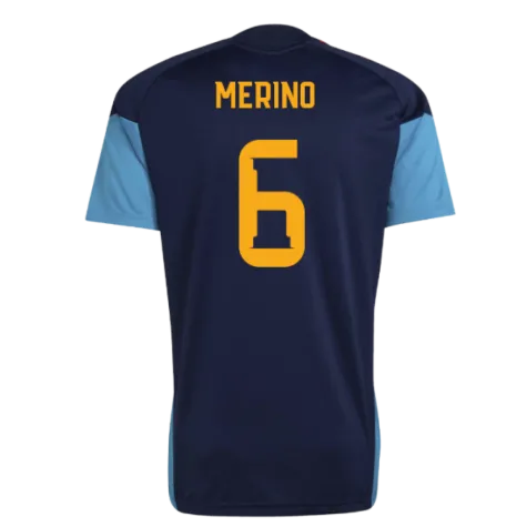 Official Mikel Merino football shirt. This is the NEW Spain Training Jersey (Night Indigo) for the 2026-2027 season which is manufactured by Adidas and is available in all Adult sizes.