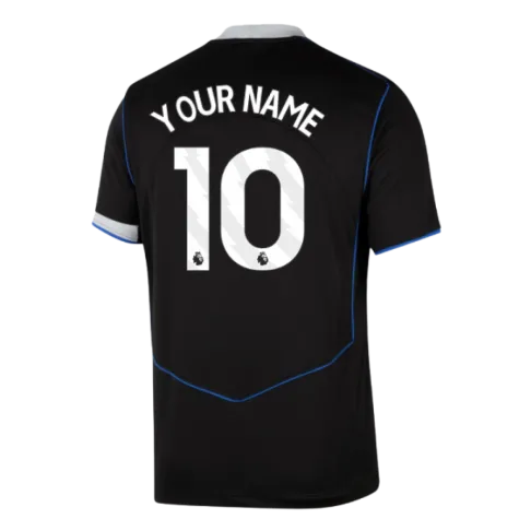 This official Your Name Nike third kit showcases Chelsea FC's iconic club crest proudly embroidered on the chest, alongside the legendary Nike Swoosh. The shirt features a modern design that captures the spirit of West London's finest, making it an essential addition to any Blues supporter's collection.