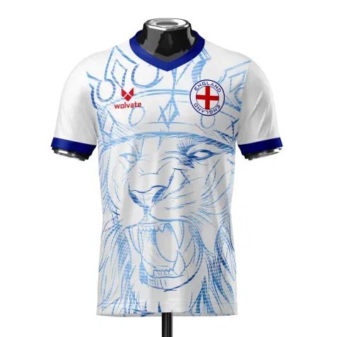 The England Heritage Football Jersey White/Blue by Wolvate delivers a clean, modern interpretation of Englands football identity through a refined blend of national color and contemporary athletic styling. Set in a crisp white base accented with bold blue detailing, the jersey features a subtle textured pattern across the body that adds depth while maintaining a sleek, minimalist look. The smooth V-neck collar and streamlined sleeves create a sharp, confident silhouette, complemented by contrasting Wolvate branding and an England-inspired crest that provide a striking finishing touch. Crafted from lightweight, breathable performance fabric, this jersey ensures lasting comfort whether youre training, supporting your team, or wearing it casually, making it the perfect choice for fans who want to carry Englands football pride with timeless style and modern flair.