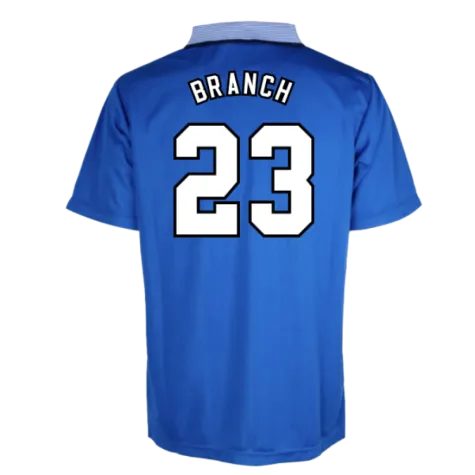 Official Michael Branch football shirt. This is the NEW Everton 1996 Home Retro Shirt which is manufactured by Score Draw and is available in all Adult sizes.