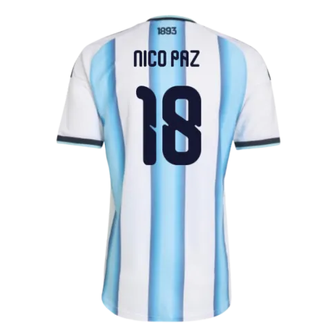 Official Nico Paz football shirt. This is the NEW Argentina Authentic Home Shirt for the 2026-2027 season which is manufactured by Adidas and is available in all Adult sizes.