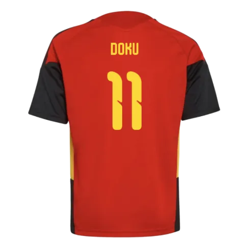 Official Jeremy Doku football shirt. This is the NEW Belgium Training Jersey (Red) - Kids for the 2026-2027 season which is manufactured by Adidas and is available in all Childrens sizes.