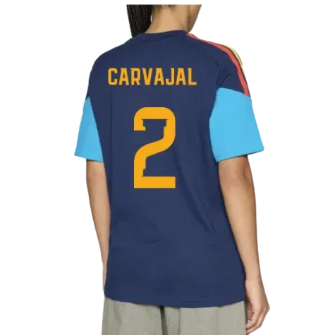 Official Dani Carvajal football shirt. This is the NEW Spain Training Tee (Night Indigo) for the 2026-2027 season which is manufactured by Adidas and is available in all Adult sizes.