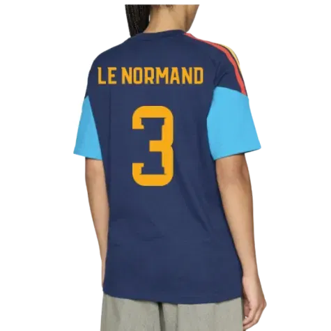 Official Robin Le Normand football shirt. This is the NEW Spain Training Tee (Night Indigo) for the 2026-2027 season which is manufactured by Adidas and is available in all Adult sizes.