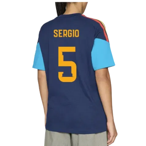 Official Sergio Busquets football shirt. This is the NEW Spain Training Tee (Night Indigo) for the 2026-2027 season which is manufactured by Adidas and is available in all Adult sizes.