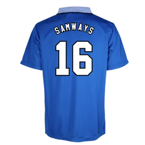 Official Vinny Samways football shirt. This is the NEW Everton 1996 Home Retro Shirt which is manufactured by Score Draw and is available in all Adult sizes.