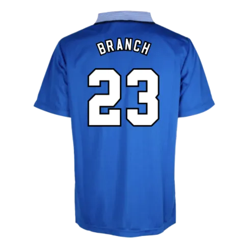 Official Michael Branch football shirt. This is the NEW Everton 1996 Home Retro Shirt which is manufactured by Score Draw and is available in all Adult sizes.