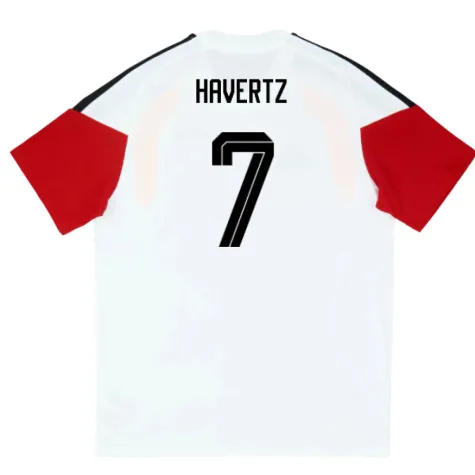Official Kai Havertz football shirt. This is the NEW Germany Training Tee (White) for the 2026-2027 season which is manufactured by Adidas and is available in all Adult sizes.