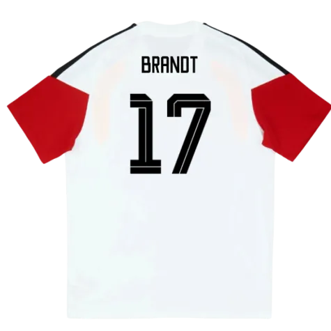 Official Julian Brandt football shirt. This is the NEW Germany Training Tee (White) - Kids for the 2026-2027 season which is manufactured by Adidas and is available in all Childrens sizes.