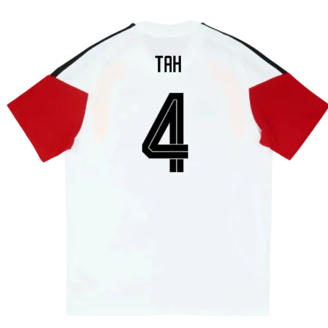 Official Jonathan Tah football shirt. This is the NEW Germany Training Tee (White) - Kids for the 2026-2027 season which is manufactured by Adidas and is available in all Childrens sizes.