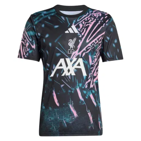 Prepare for match day in electrifying style with the official Liverpool FC 2025-2026 Pre-Match Shirt. This stunning design features a bold black base brought to life with dynamic teal and pink abstract graphics that capture the energy and passion of Anfield on match day.