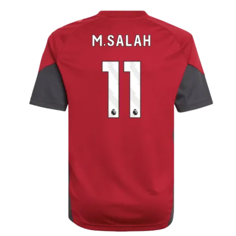 Official Mohamed Salah football shirt. This is the NEW Liverpool Training Jersey (Strawberry Red) - Kids for the 2025-2026 season which is manufactured by Adidas and is available in all Childrens sizes.