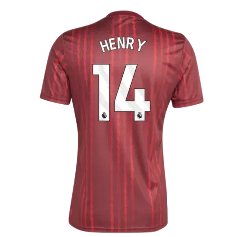 Official Thierry Henry football shirt. This is the NEW Arsenal Pre-Match Warm Up Shirt (Burgundy) for the 2025-2026 season which is manufactured by Adidas and is available in all Adult sizes.