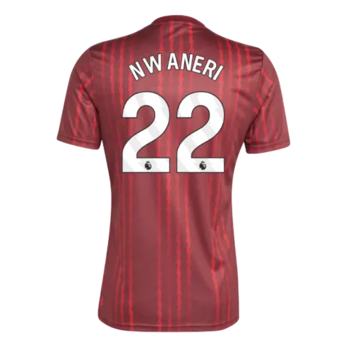 Official Ethan Nwaneri football shirt. This is the NEW Arsenal Pre-Match Warm Up Shirt (Burgundy) for the 2025-2026 season which is manufactured by Adidas and is available in all Adult sizes.