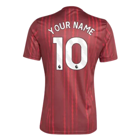 Official Your Name football shirt. This is the NEW Arsenal Pre-Match Warm Up Shirt (Burgundy) for the 2025-2026 season which is manufactured by Adidas and is available in all Adult sizes.