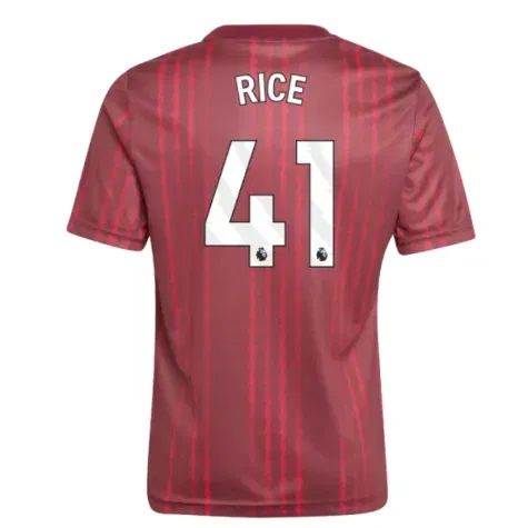 Official Declan Rice football shirt. This is the NEW Arsenal Pre-Match Warm Up Shirt (Burgundy) - Kids for the 2025-2026 season which is manufactured by Adidas and is available in all Childrens sizes.