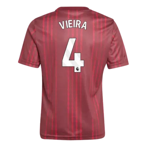 Official Patrick Vieira football shirt. This is the NEW Arsenal Pre-Match Warm Up Shirt (Burgundy) - Kids for the 2025-2026 season which is manufactured by Adidas and is available in all Childrens sizes.
