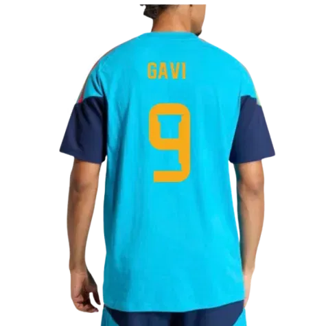 Official Gavi football shirt. This is the NEW Spain Training Tee (Bold Aqua) for the 2026-2027 season which is manufactured by Adidas and is available in all Adult sizes.
