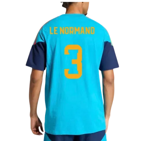 Official Robin Le Normand football shirt. This is the NEW Spain Training Tee (Bold Aqua) for the 2026-2027 season which is manufactured by Adidas and is available in all Adult sizes.