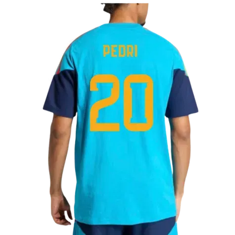 Official Pedri football shirt. This is the NEW Spain Training Tee (Bold Aqua) for the 2026-2027 season which is manufactured by Adidas and is available in all Adult sizes.