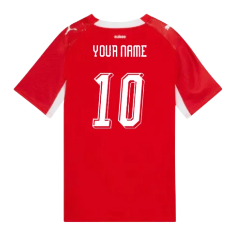 Official Your Name football shirt. This is the NEW Switzerland Home Shirt (Kids) for the 2026-2027 season which is manufactured by Puma and is available in all Childrens sizes.