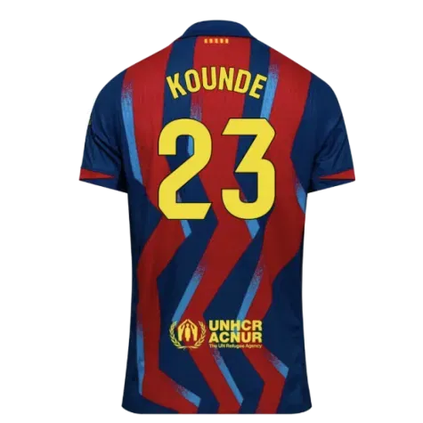 Official Jules Kounde football shirt. This is the NEW Barcelona Authentic Dri-Fit SE Fourth Shirt for the 2025-2026 season which is manufactured by Nike and is available in all Adult sizes.
