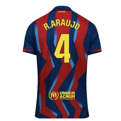 Official Ronald Araujo football shirt. This is the NEW Barcelona Authentic Dri-Fit SE Fourth Shirt for the 2025-2026 season which is manufactured by Nike and is available in all Adult sizes.