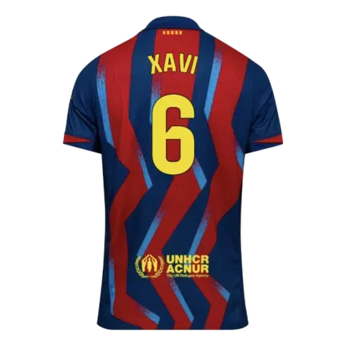 Official Xavi football shirt. This is the NEW Barcelona Authentic Dri-Fit SE Fourth Shirt for the 2025-2026 season which is manufactured by Nike and is available in all Adult sizes.