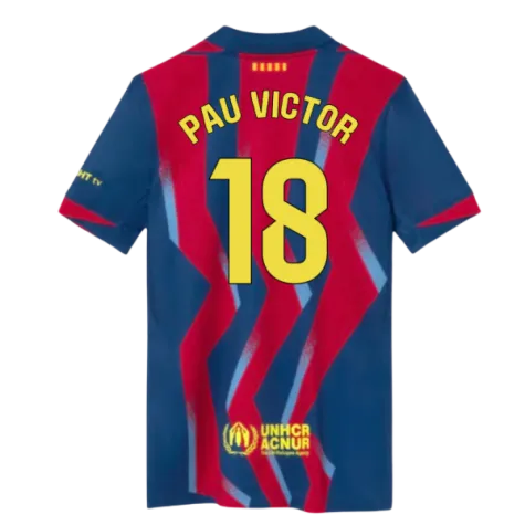 Official Pau Vctor football shirt. This is the NEW Barcelona Fourth Shirt (Kids) for the 2025-2026 season which is manufactured by Nike and is available in all Childrens sizes.