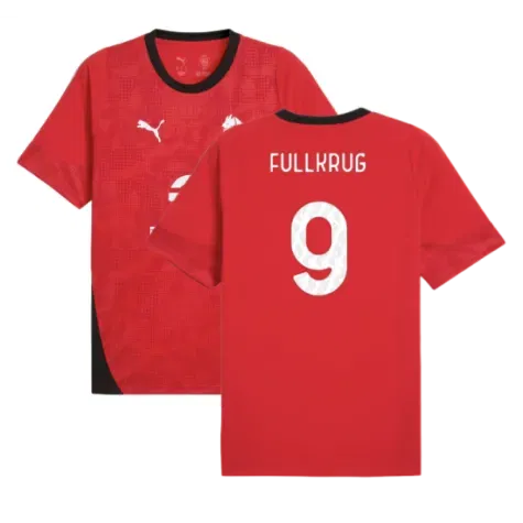 Official Niclas Fullkrug football shirt. This is the NEW AC Milan Training Jersey (Red) for the 2025-2026 season which is manufactured by Puma and is available in all Adult sizes.