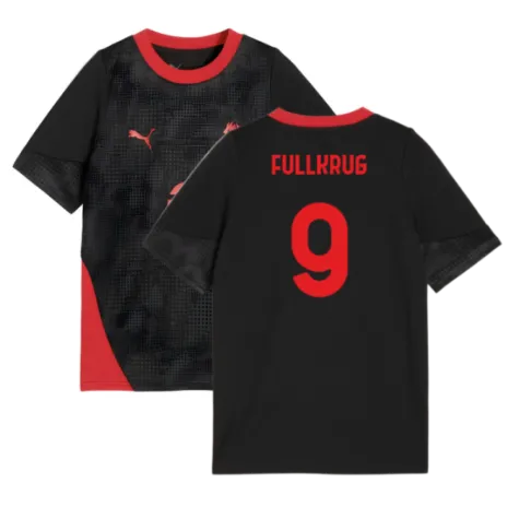 Official Niclas Fullkrug football shirt. This is the NEW AC Milan Training Jersey (Black) - Kids for the 2025-2026 season which is manufactured by Puma and is available in all Childrens sizes.