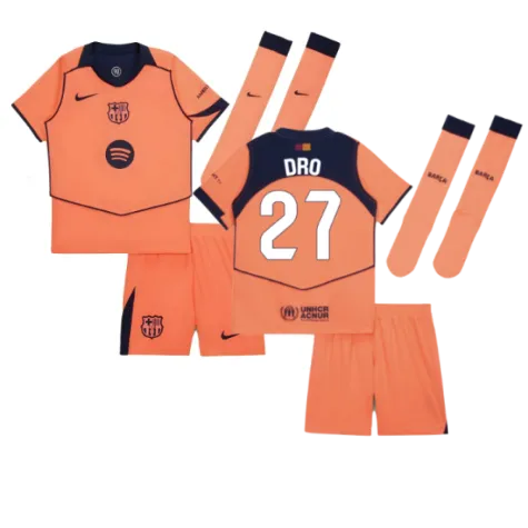 Official Dro Fernandez football shirt. This is the NEW Barcelona Third Mini Kit for the 2025-2026 season which is manufactured by Nike and is available in all Childrens sizes.