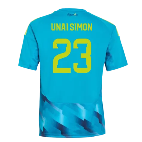 Official Unai Simon football shirt. This is the NEW Spain Home Goalkeeper Shirt (Aqua) - Kids for the 2026-2027 season which is manufactured by Adidas and is available in all Childrens sizes.
