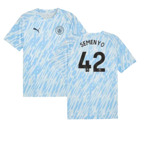 Official Antoine Semenyo football shirt. This is the NEW Man City Warm Up Jersey (Silver Sky) for the 2025-2026 season which is manufactured by Puma and is available in all Adult sizes.