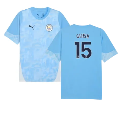 Official Marc Guehi football shirt. This is the NEW Man City Training Jersey (Light Blue) - Kids for the 2025-2026 season which is manufactured by Puma and is available in all Childrens sizes.