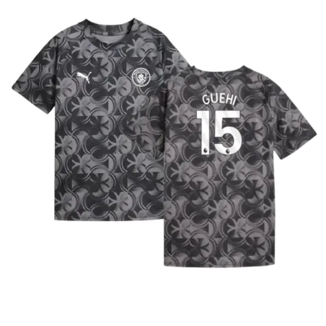 Official Marc Guehi football shirt. This is the NEW Man City Warm Up Jersey (Black) - Kids for the 2025-2026 season which is manufactured by Puma and is available in all Childrens sizes.