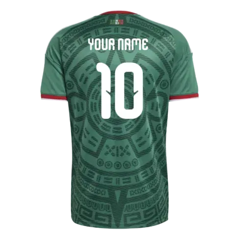 The official Your Name Mexico federation crest sits proudly on the chest, featuring the iconic eagle motif, whilst the Adidas logo is positioned on the opposite side.