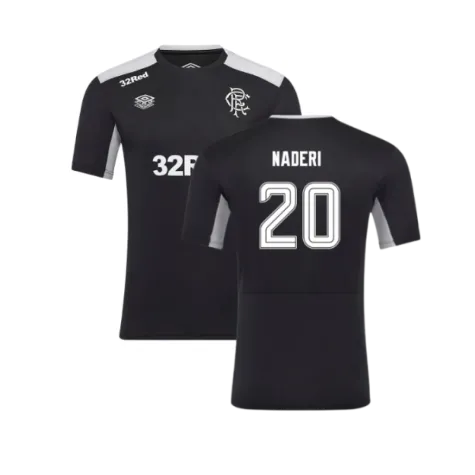Official Ryan Naderi football shirt. This is the NEW Rangers Pro Training Tee (Caviar) for the 2025-2026 season which is manufactured by Umbro and is available in all Adult sizes.